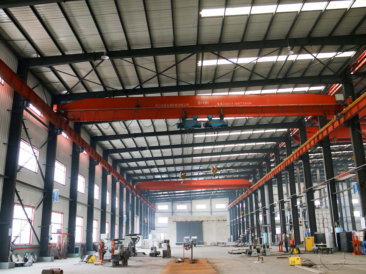公司座落于營口市中小企業(yè)園(遼河開發(fā)區(qū)),東距沈大高速公路營大入口10公里,西臨營口市區(qū)4公里,交通十分便利。公司廠區(qū)占地面積32000平方米,建筑面積11000平方米。擁有大型焊接平臺、半自動切割下料生產(chǎn)線、型鋼拋丸處理生產(chǎn)線、數(shù)控開卷、矯平、剪切生產(chǎn)線等起重機(jī)制造設(shè)備,產(chǎn)品生產(chǎn)工藝先進(jìn),檢測手段完備。